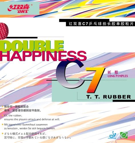 DHS C7 Pips-Long Rubber Defense/Loop/Spin Hardiness: hard/middle C7, the rubber ensures the players to attack and defense at will.