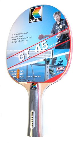 | 1 of 1 people found the following review helpful By Maverick "Avid Shopper" (Edison, NJ United States) - See all my reviews This review is from: Kettler 7205-100 GT-45 Table Tennis Racquet (Sports) This is a nice looking racquet but performs below par. You get what you pay for. If you are looking for decent racquets go with the Joola brand of racquets they are far superior. This review is from: Kettler 7205-100 GT-45 Table Tennis Racquet (Sports) This racquet is only for your guests that don't know anything about true table tennis. It is a good, inexpensive introduction to a pips-in paddle but anyone who is looking to really learn table tennis should look at Butterfly or Killerspin paddles. |