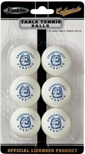 Spin em' and slam em' while competing for bragging rights with these Connecticut Huskies Table Tennis Balls by Franklin! Features (6) white table tennis balls with official team logos and colors for you to play and have fun with in the name of team spirit!